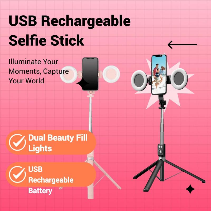 【Dual Beauty Fill Lights】: Equipped with two fill lights, this selfie stick enhances your photos and videos by providing balanced lighting for any environment.